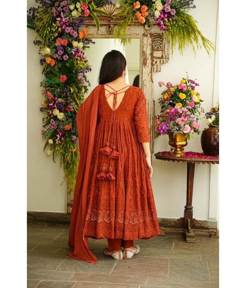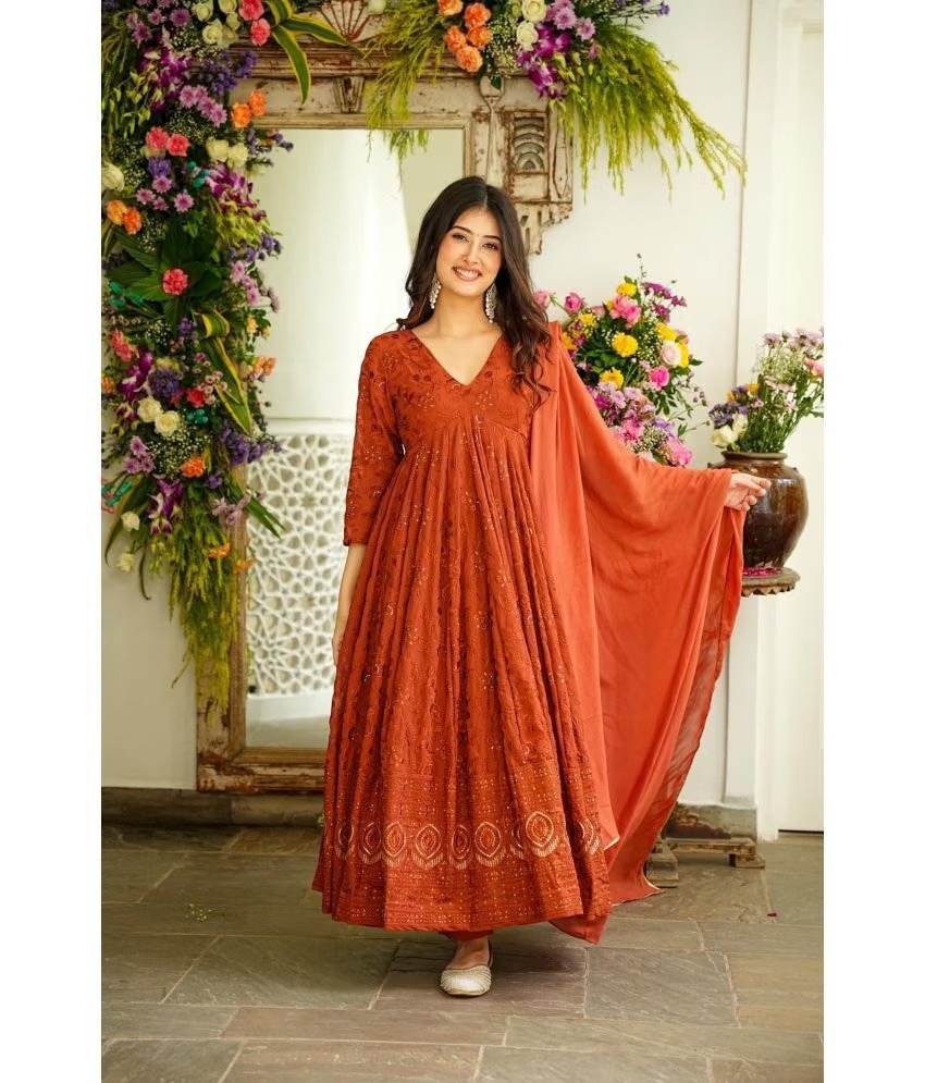 Estela Georgette Embroidered Kurti With Pants Women’s Stitched Salwar Suit – Orange ( Pack of 1 )
