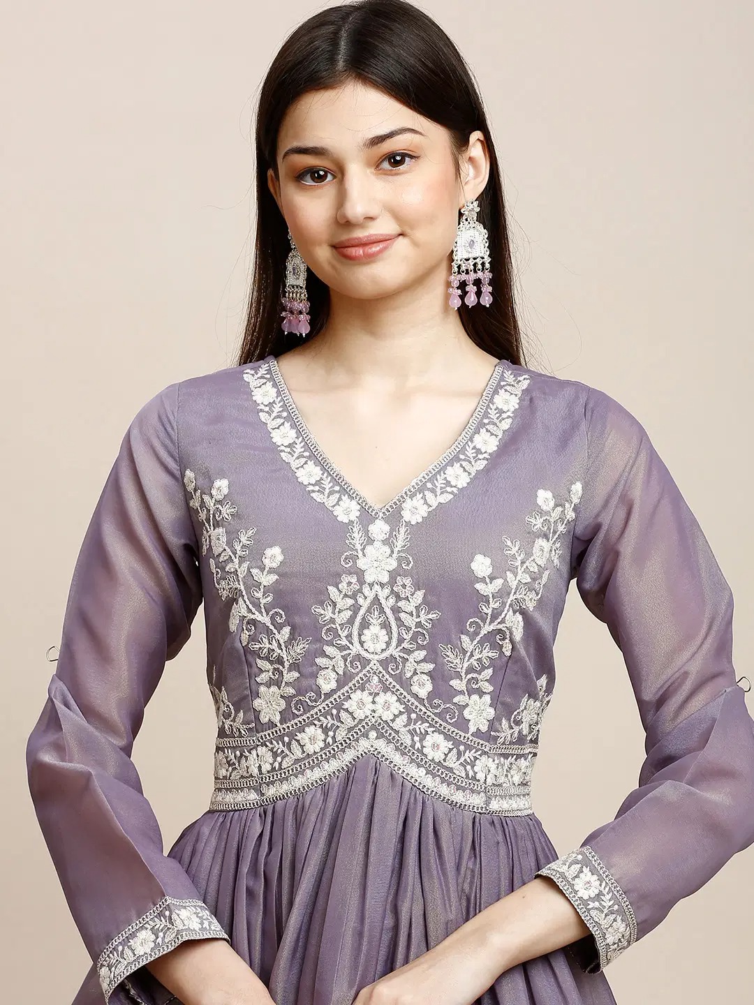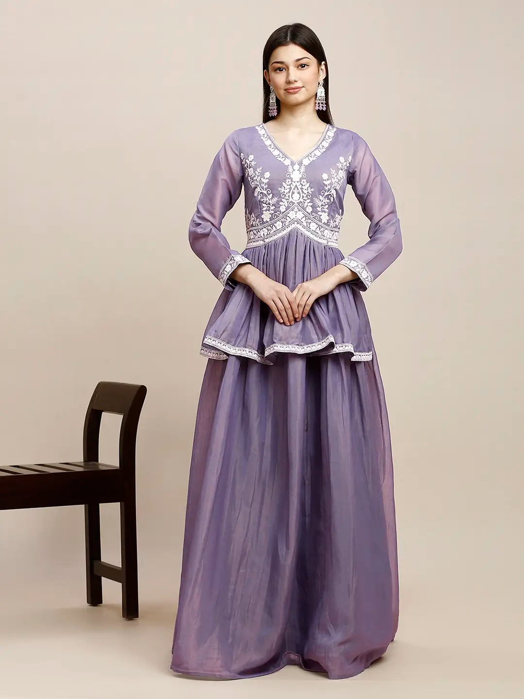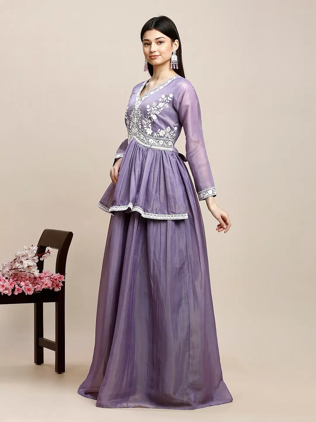 Lavender Flared Crepe Women’s Stitched Ethnic Gown ( Pack of 1 )