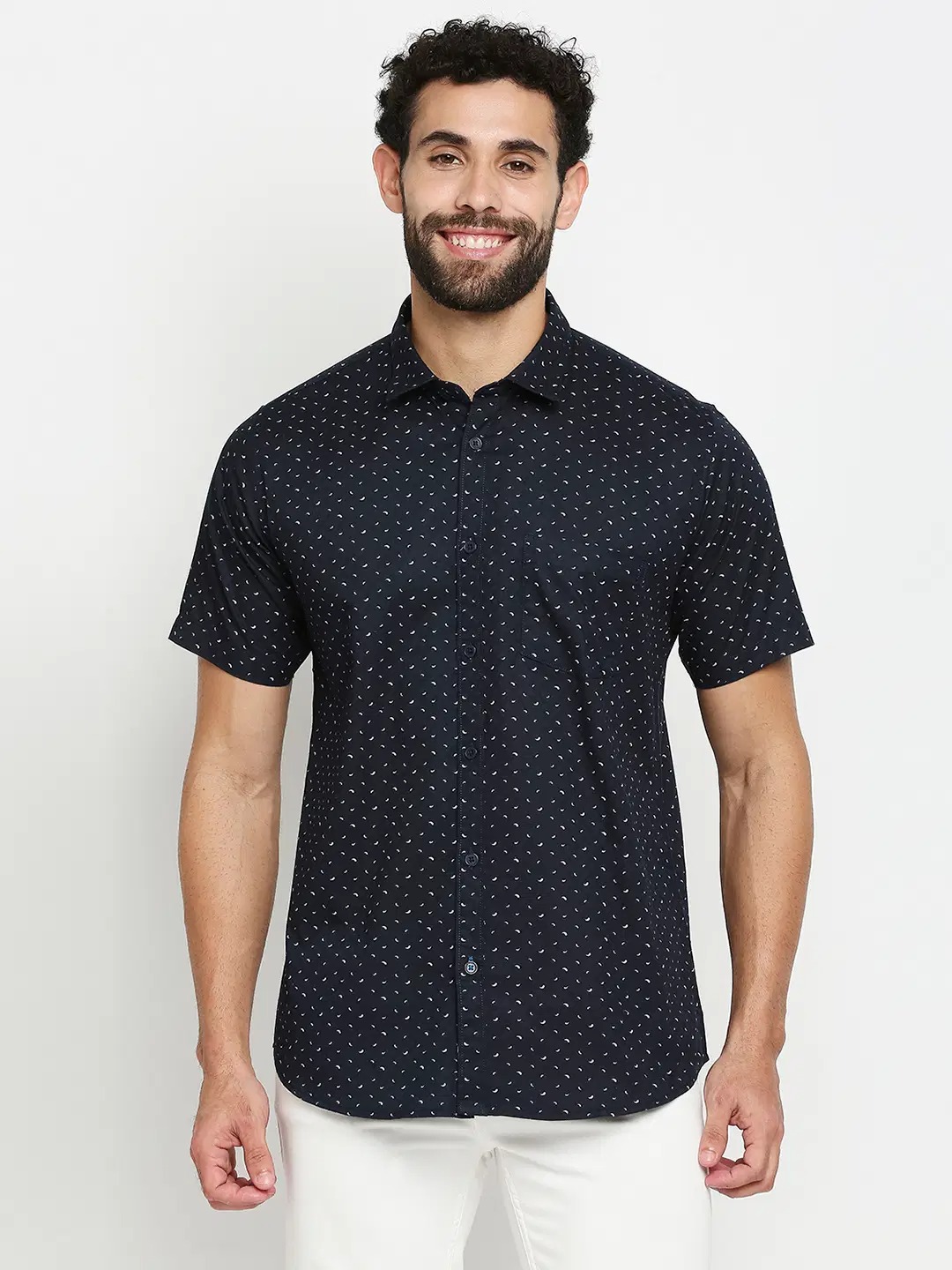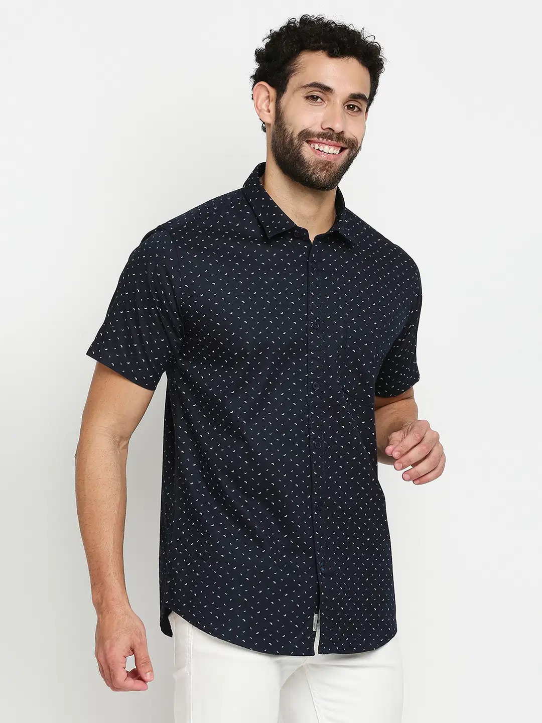 Navy Blue 100% Cotton Slim Fit Men’s Casual Shirt ( Pack of 1 )