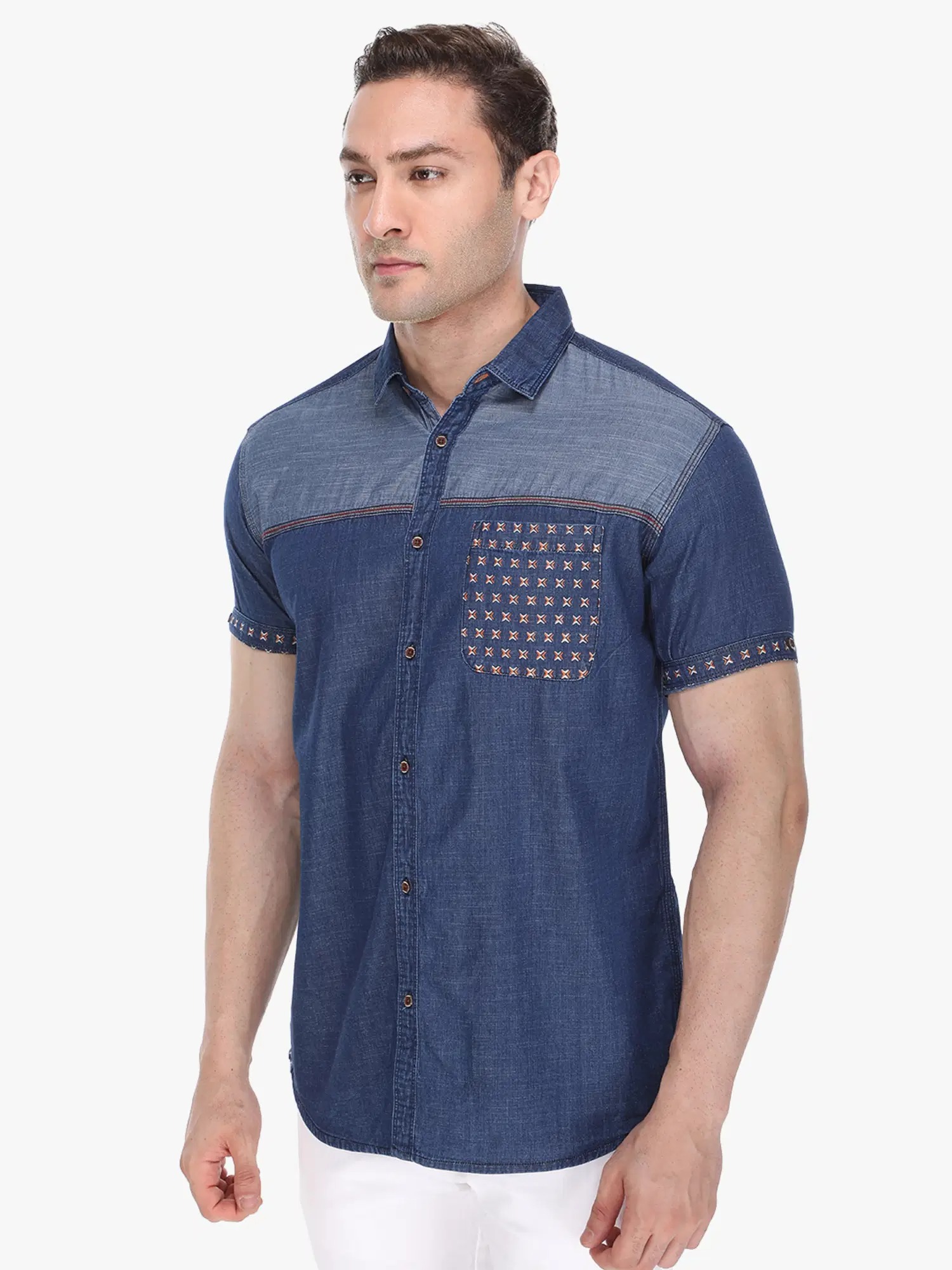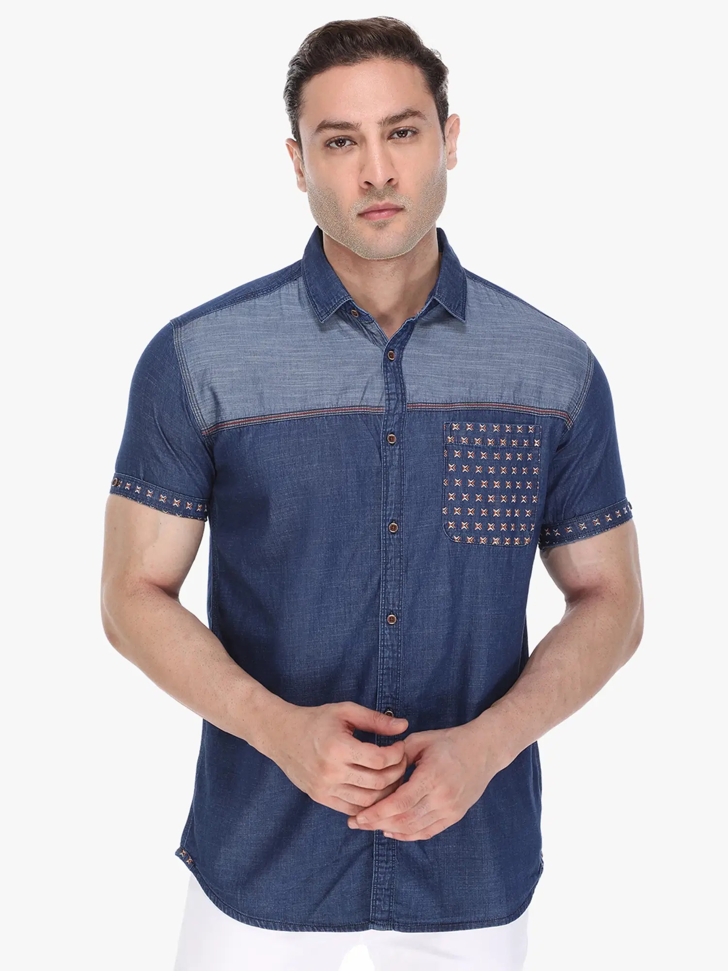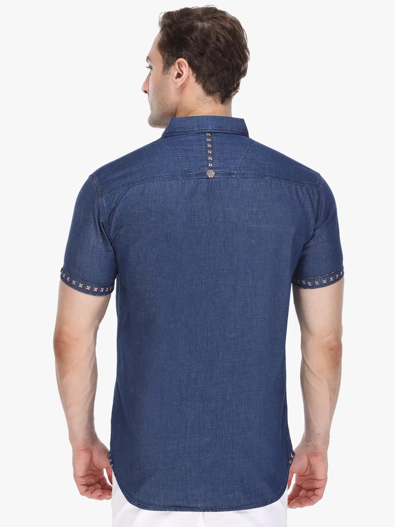 Navy Blue Denim Slim Fit Men’s Casual Shirt ( Pack of 1 )