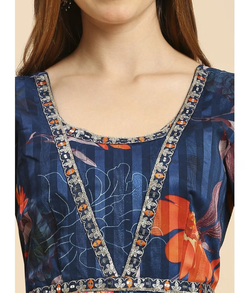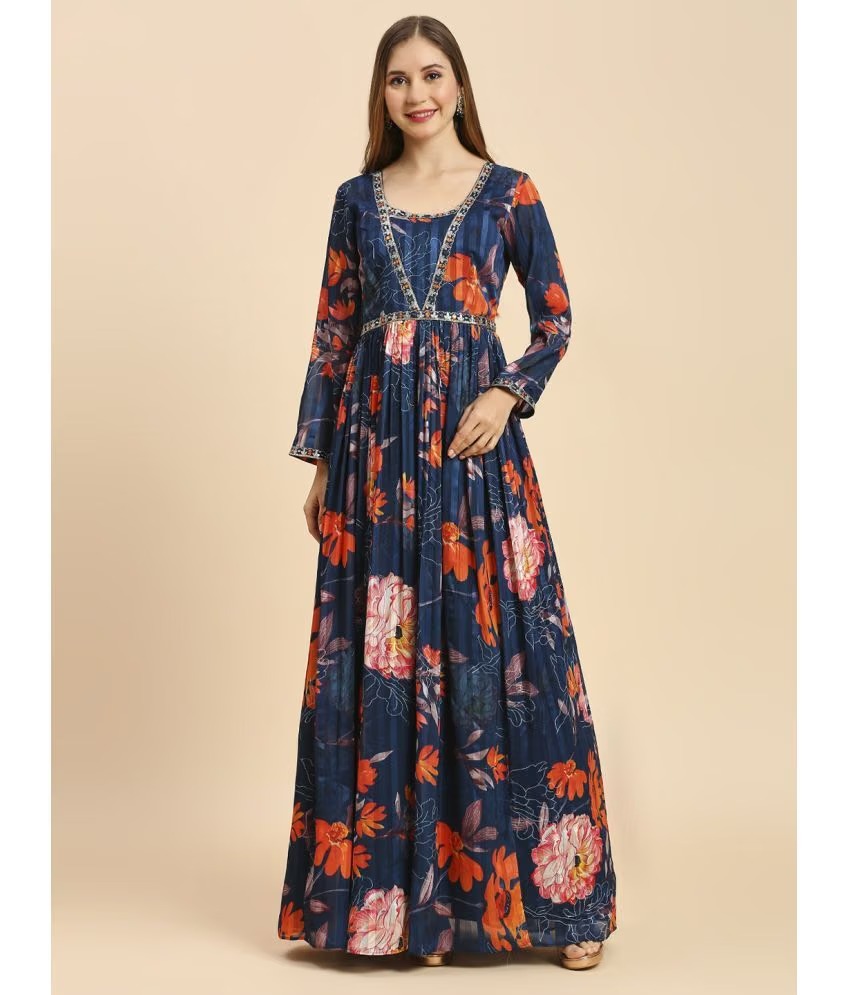 Satin Printed Full Length Women’s Gown – Blue ( Pack of 1 )