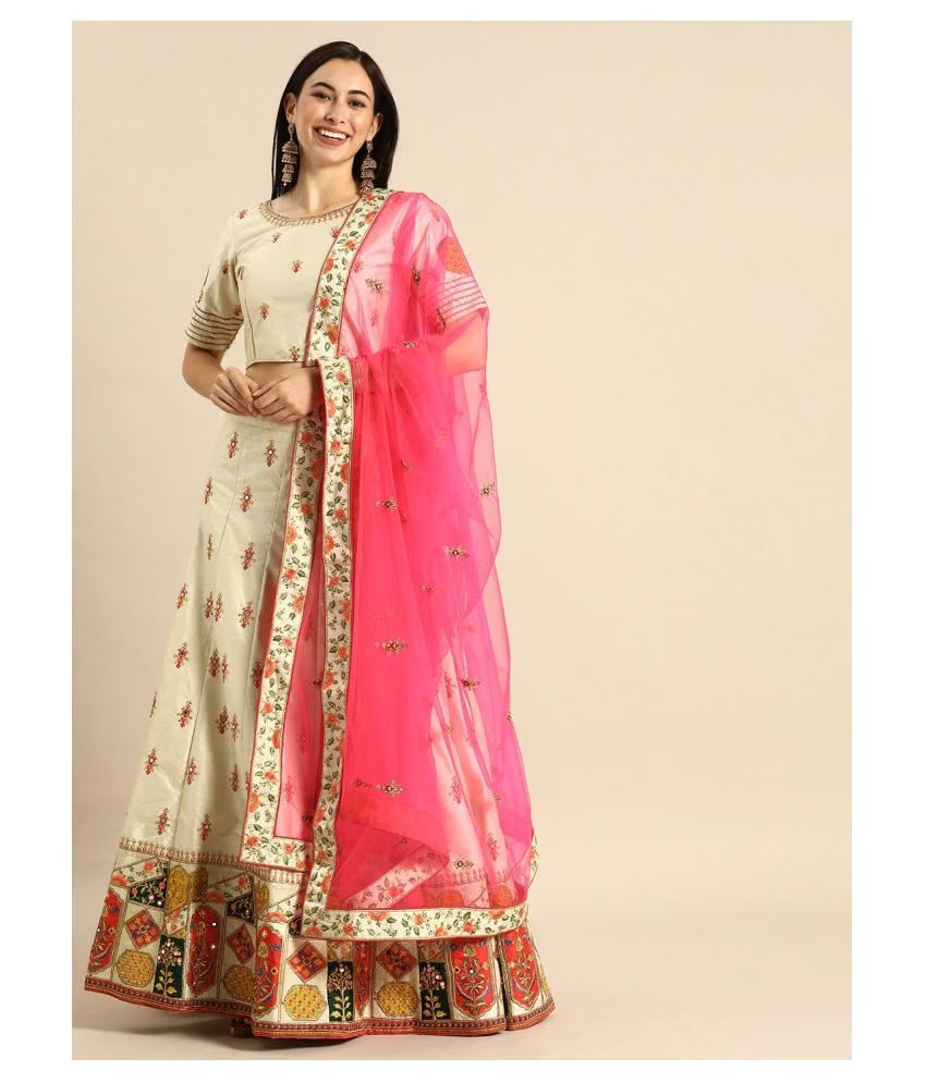 White Net Chaniya Choli Semi Stitched Lehenga