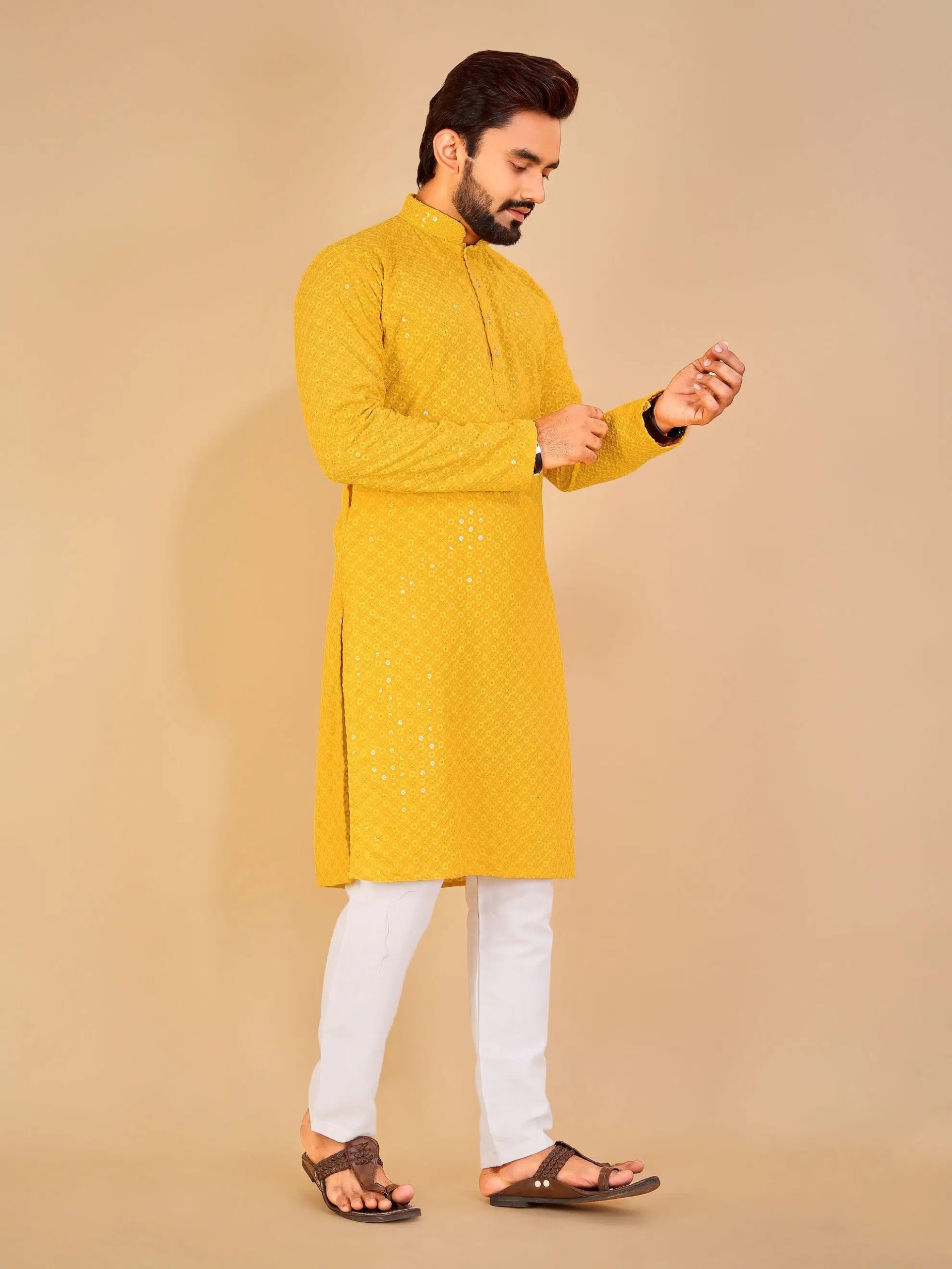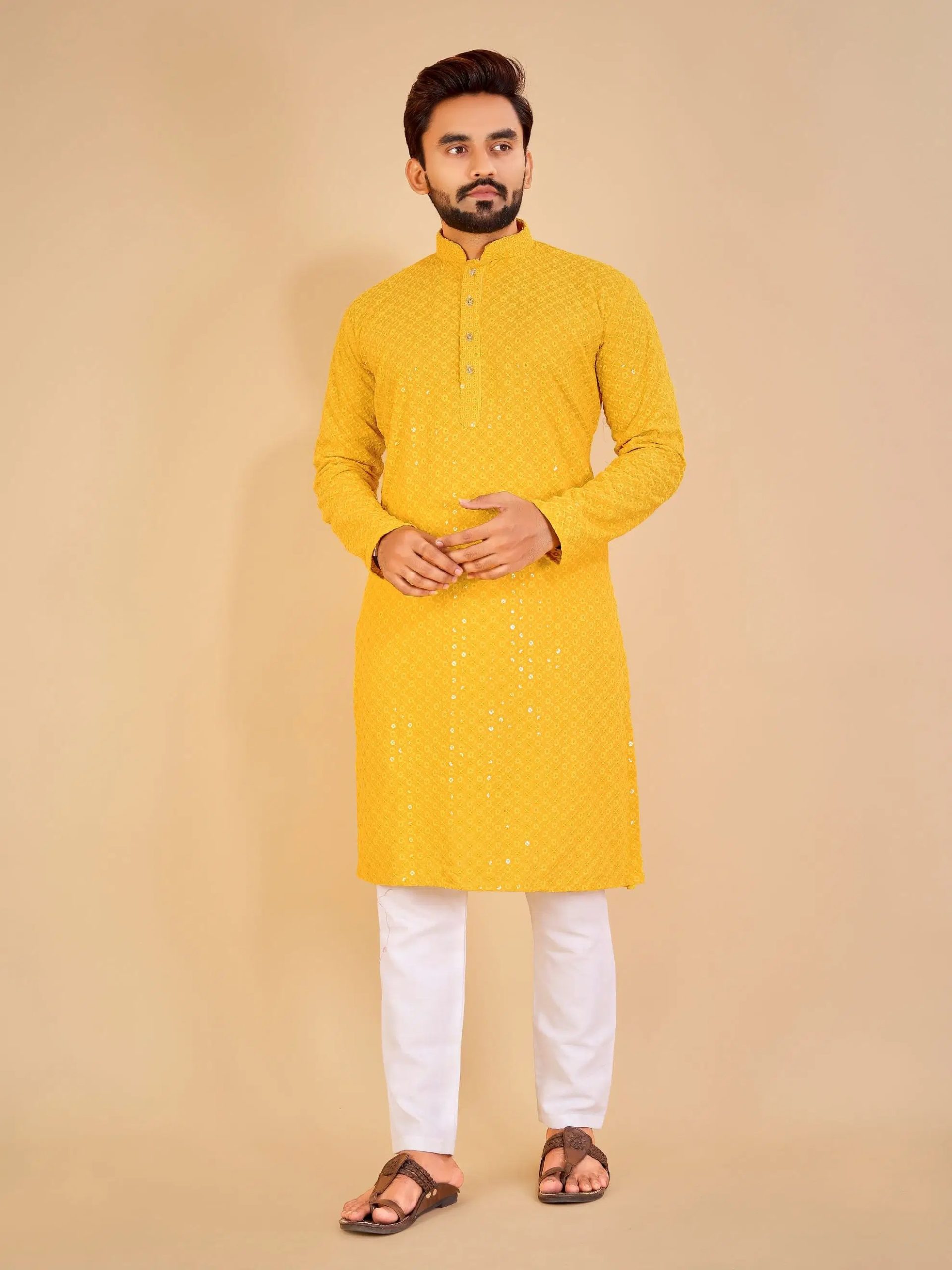 & Free ShippingElevate your ethnic wardrobe with this stylish Kurta and Pyjama set, designed for comfort and elegance. Crafted from high-quality fabric, this traditional outfit features a well-tailored kurta paired with a matching pyjama, making it perfect for festive occasions, weddings, cultural events, or everyday wear. The kurta showcases a classic silhouette with details like a mandarin collar, side slits, and full sleeves, offering a timeless appeal with a modern touch. Whether you prefer cotton for breathability or silk blend for a refined look, this kurta set combines tradition with trend effortlessly. Ideal for men who appreciate style and tradition in equal measure.